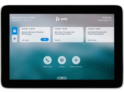Support for native 3rd party applications includes: Zoom Rooms, 8x8, BlueJeans, GoToRoom, Tencent, RingCentral, DialPad and others (when paired to a Poly Video OS system); Integration with Extron (environmental controls)