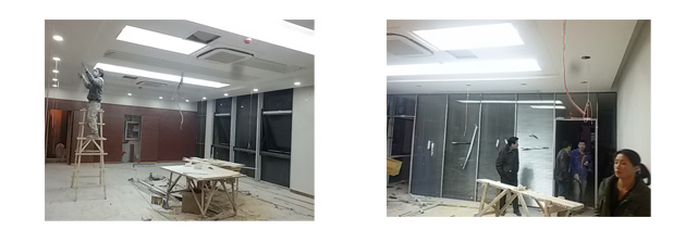 | 会议室现场施工图:包含了会议室的装修及综合布线以及灯光的安装。 |