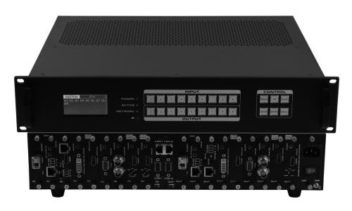 本矩阵单通道交换信号速率高达12.5Gbps,主板交换能力采用四核四链路处理技术,核 心交换能力可达速率32Gbps 。数字信号运用无压缩的传输方式,保证图像信号的高保真输 出; 独特的信号链路屏蔽设计技术保证信号的完整性; 内部核心数字开关具有超强的抗干扰 能力及长期连续工作的高稳定性; 运用先进的高级算法,保证命令的高效实时性; 可选择 CVBS/YPbPr/VGA/HDMI/DVI/SD/HD/3G-SDI/HDBaseT/Fiber等信号作为输入或输出,完成大路数 信号的配置规模,灵活的插卡式、模块化结构; 采用独特的处理方式,大大提高设备的切换 速度,实现指令之间不需等待的快速控制,实现无缝快速切换功能; 整套设计理念完美解决 视频系统中信号源过多和数模信号并存的兼容难题,并可以最大程度的节省成本,利于系统 升级、扩容及维护; 过压保护和ESD防静电技术等多重保护措施,保证设备免收外部冲击; 具备掉电状态存储保护、开机自动恢复记忆的功能; 同时本矩阵具有强大的网络传输和网络 管理能力。支持7*24小时不间断运行; 具备双网络及 RS232通讯接口备份控制,可以方便与 个人电脑、中央控制系统等各种远端控制设备配合使用。