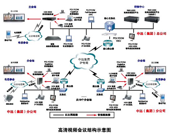 团IP专用网络基础之上,采用POLYCOM一体化的解决方案,依据H.323标准协议进行视频会议系统组网。在控制中